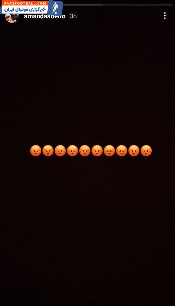 پس از اخراج مدافع استقلال، آماندا، همسر رافائل سیلوا با انتشار یک استوری واکنش جالبی به این صحنه داشت. او چندین ایموجی خشم را در یک صفحه قرار داد و به این شکل عصبانیت خود را ابراز کرد.
