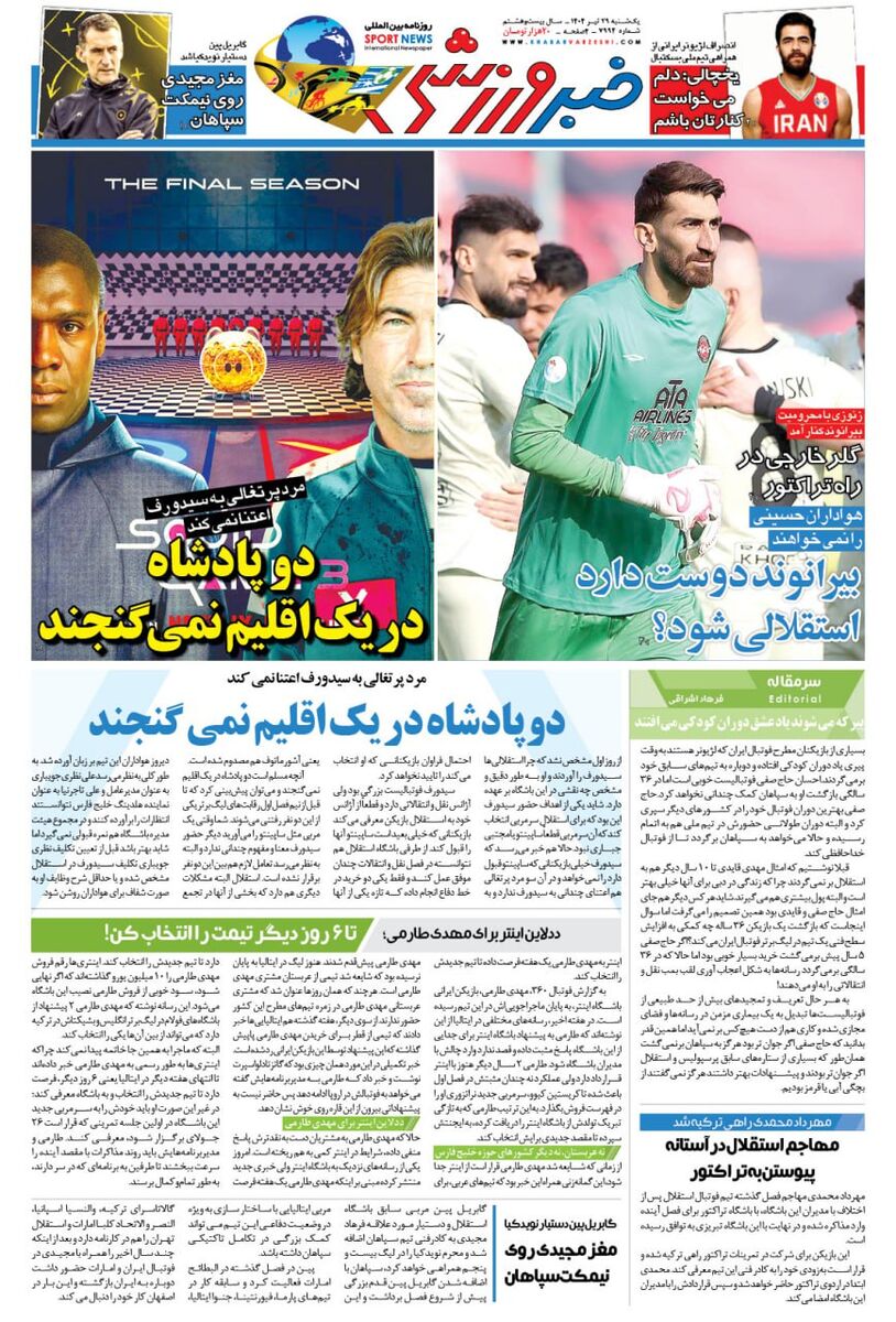 ساپینتو و سیدورف سرشاخ شدند/ روزنامه خبرورزشی را یک روز زودتر در سایت خبرورزشی بخوانید
