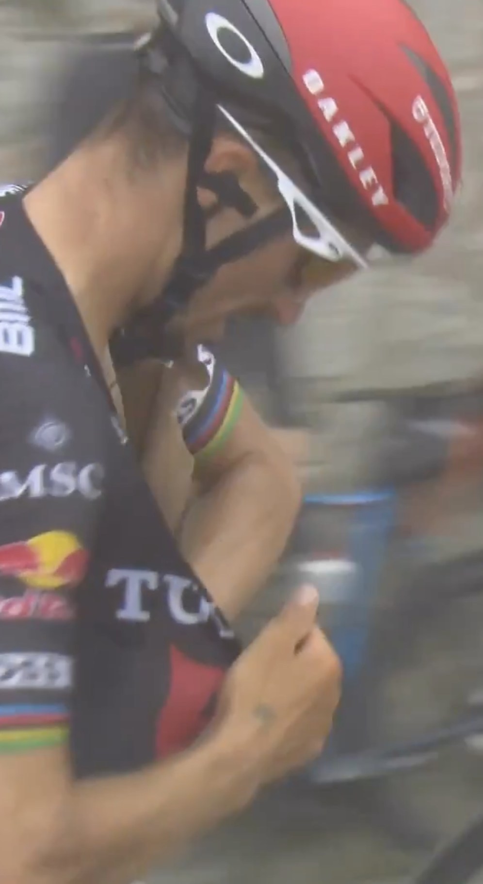 این پوستر که در اصل برای تشویق ووت ون آرت از تیم ویسما طراحی شده بود، به سرعت توسط آلافیلیپ به قطعات کوچکتر تقسیم شد. سپس او یکی از این تکهها را با زیرکی خاصی زیر لباس مسابقهاش در ناحیه سینه قرار داد تا از بدن خود مقابل برودت هوا محافظت کند. این حرکت در حالی صورت گرفت که روز گذشته این مرحله از تور در دل کوهستانهای آلپ برگزار شد، منطقهای که اغلب با آب و هوای خنک و مه آلودش شناخته میشود و نیاز به تدابیر ویژهای برای حفظ دمای بدن رکابزنان دارد.