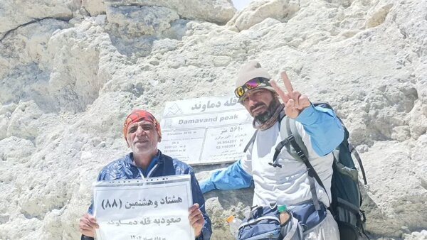 مرد ۷۰ ساله یزدی برای هشتادوهشتمین بار قله دماوند را فتح کرد!