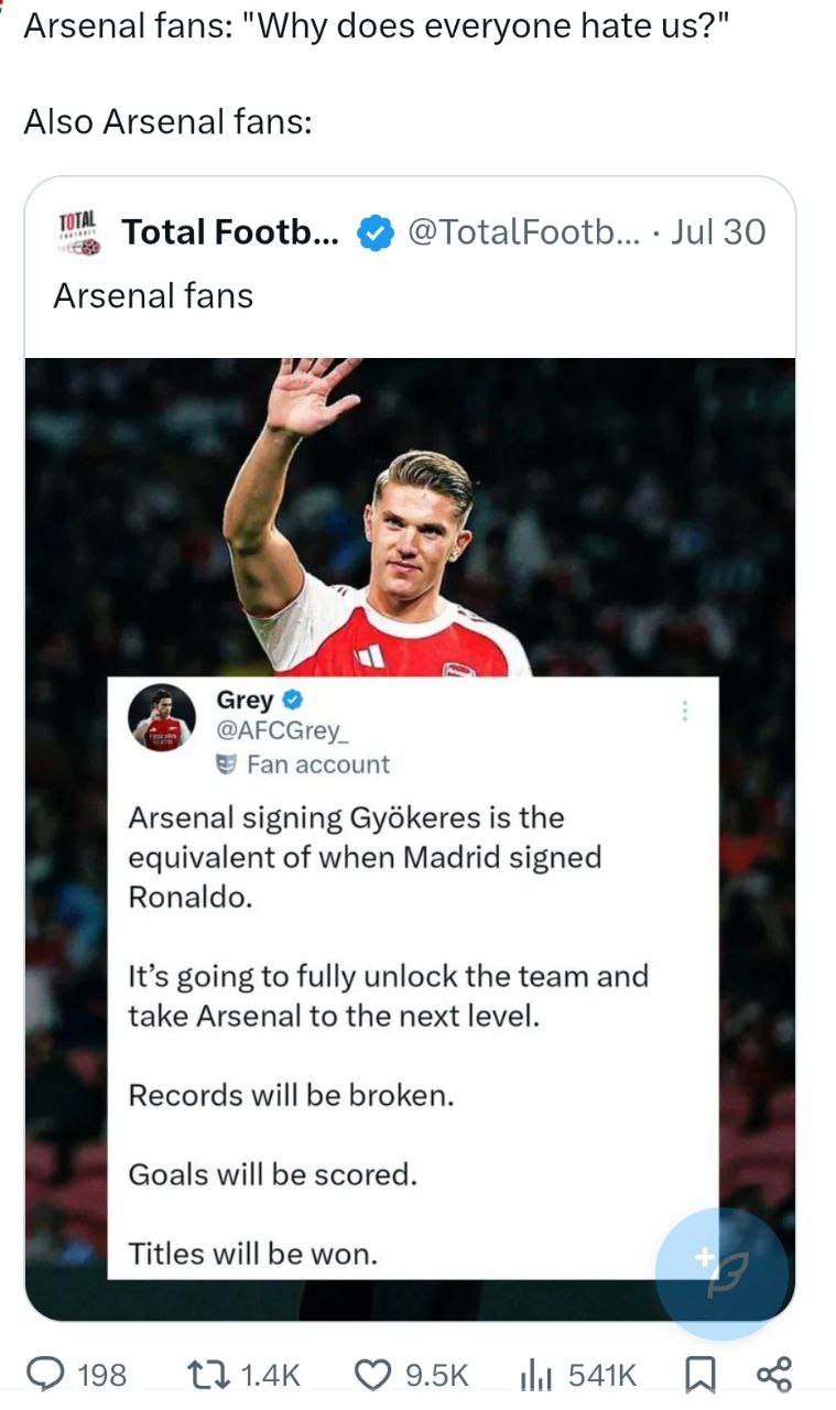 خرید گیوکرش، معادل خرید رونالدو برای مادرید بود. این خرید کامل قفل تیم را باز میکند و آرسنال به سطح بعدی میبرد. رکوردها شکسته خواهند شد. گلها به ثمر میرسند. جامها فتح خواهند شد.