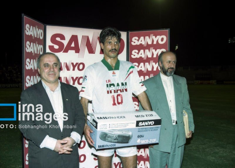 این تصویر از مصطفوی در کنار علی دایی مربوط به جام ملتهای آسیا سال ۱۹۹۶ است که جایزه بهترین گلزن مسابقات به او داده شد.