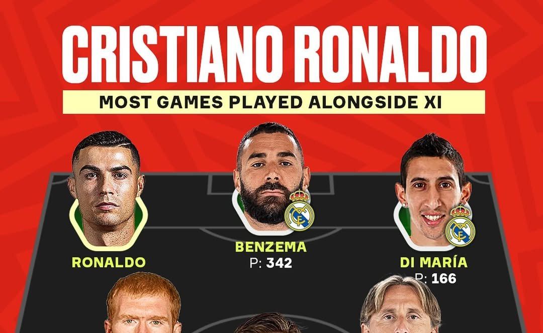 در همین راستا، پلتفرم «وانفوتبال» با استناد به وبسایت معتبر ترنسفرمارکت و بررسی دقیق آمار بازیهای کریستیانو رونالدو، ترکیبی از یازده بازیکنی را معرفی کرده که بیشترین تعداد بازی را در کنار این فوقستاره پرتغالی انجام دادهاند. این ترکیب شامل بازیکنانی در پستهای مختلف است که اغلب در تیم رئال مادرید حضور داشتند، و تنها یکی از آنها در منچستریونایتد بوده است.