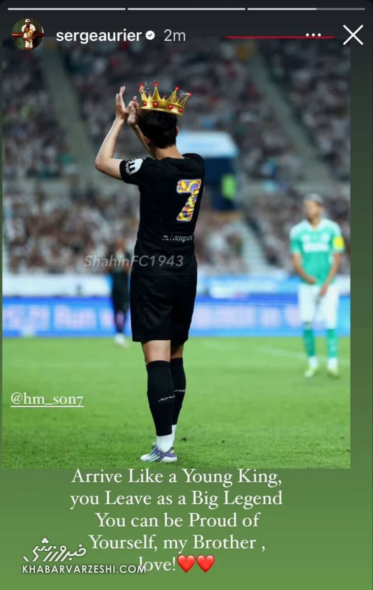 سرژ اوریه مدافع جدید پرسپولیس با انتشار پیامی به جدایی سون هیونگ مین از تاتنهام واکنش جالبی نشان داد.
