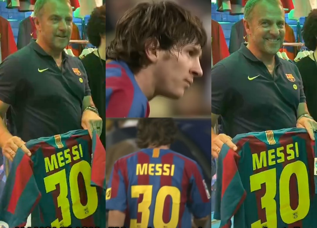 فلیک تصمیم گرفت نخستین پیراهنی را که لیونل مسی اسطوره باشگاه با آن به میدان رفت، انتخاب کند؛ همان پیراهن معروف با شماره ۳۰ که یادآور روزهای آغازین مسی در نیوکمپ است. لبخند رضایت او هنگام در دست گرفتن این پیراهن ارزشمند، گویای همهچیز بود.