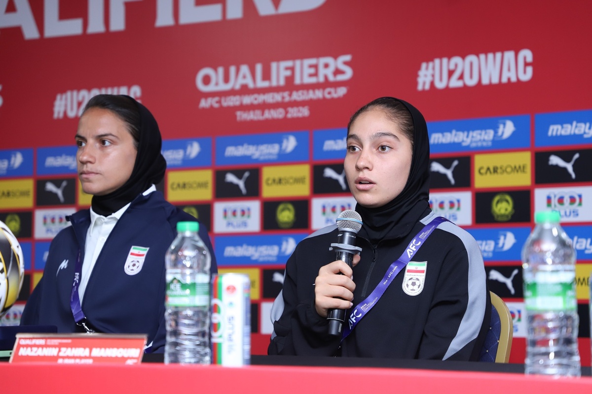 سرمربی و کاپیتان تیم ملی فوتبال دختران زیر ۲۰ سال در کنفرانس خبری پاسخگوی سوالات خبرنگاران بودkn.