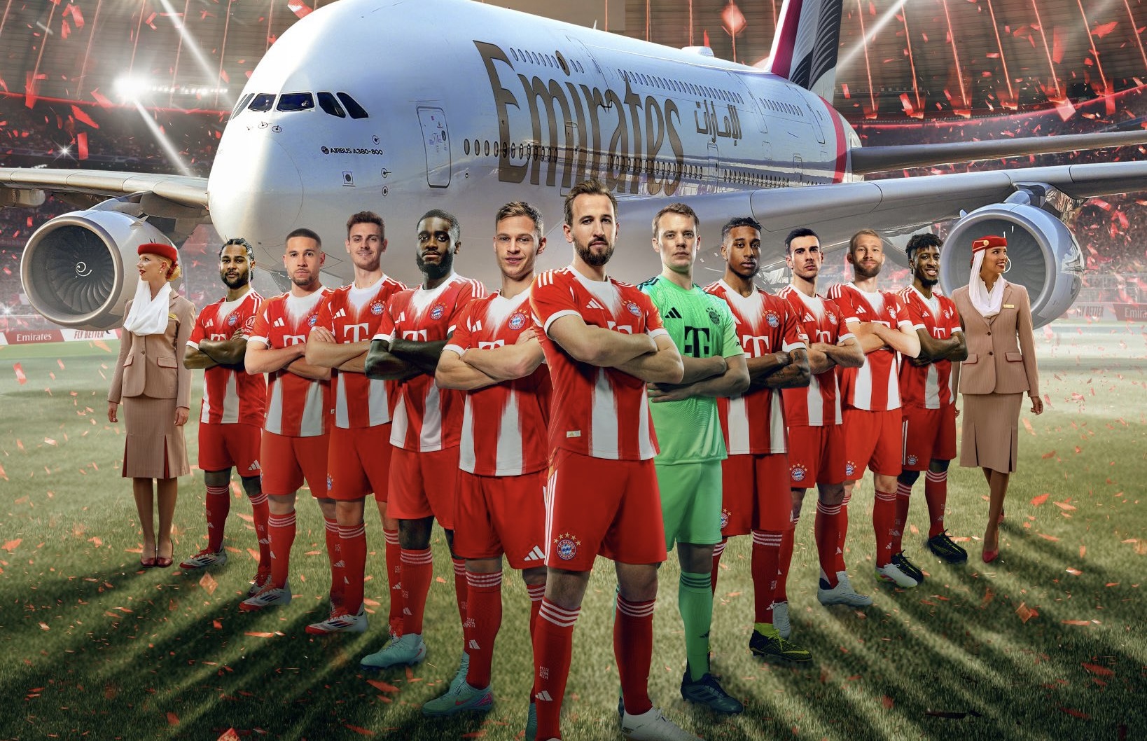 با اعلام باشگاه، بایرن مونیخ و شرکت هواپیمایی امارات یک قرارداد بلندمدت همکاری تا پایان فصل ۳۲–۲۰۳۱ امضا کردند. این همکاری در درجه اول شامل تبلیغات محیطی در ورزشگاه آلیانتس آرنا در تمامی دیدارهای بوندسلیگا خواهد بود و همچنین فعالیتهای مشترک در بستر رسانههای اجتماعی و دیجیتال هر دو مجموعه را در بر میگیرد.