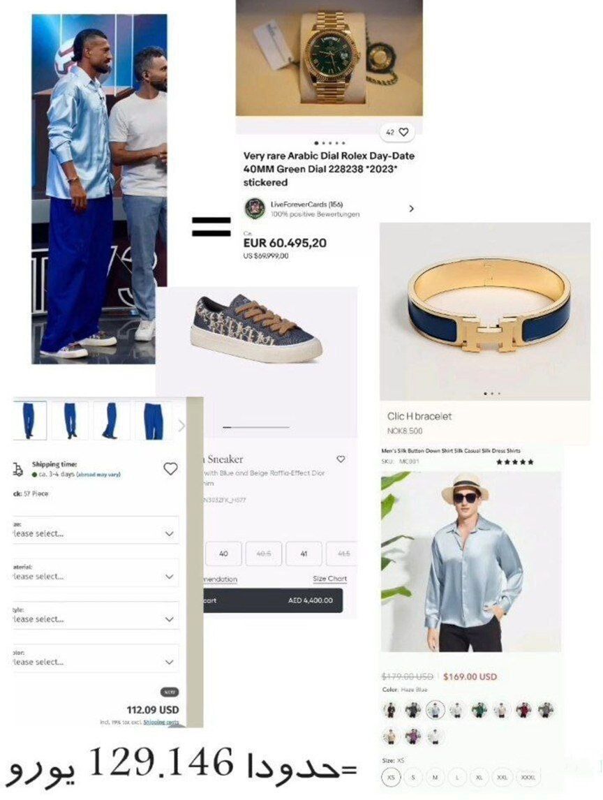 جالب است بدانید همین پیراهنی که بر تن رضاییان بود، چیزی در حدود ۱۷۰۰ یورو قیمت داشت که مبلغ فوق العاده بالایی به حساب می آید. رضاییان همچنین در این برنامه از ساعت رولکس، دستبند هرمس و کفش دیور استفاده کرد که همگی از برندهای فوق العاده معروف و بسیار گران در دنیا به حساب می آیند. قیمت مجموع لباس و اکسسوری هایی که رامین دوشنبه شب در برنامه فوتبال برتر به معرض نمایش گذاشت، چیزی در حدود ۱۳۰ هزار یورو قیمت داشت که این عدد به پول ما در حال حاضر چیزی در حدود ۱۴ میلیارد تومان می شود.
