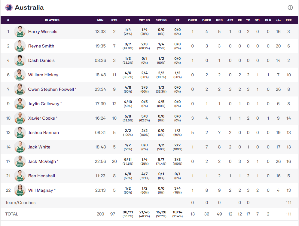 تیم ملی بسکتبال استرالیا در نخستین بازی خود از مرحله گروهی کاپ آسیا ۲۰۲۵، با پیروزی قاطع ۹۷ بر ۶۱ مقابل کرهجنوبی، شروعی طوفانی داشت و قدرت خود را به رخ رقبا کشید.