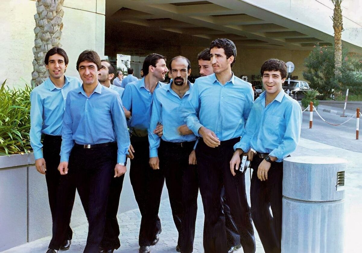 این عکس تعدادی از ستارگان ملیپوش کشورمان را در نیمه اول دهه ۶۰ نشان میدهد. هنگامی که تیم ملی ایران خود را آماده حضور در جام ملتهای ۱۹۸۴ سنگاپور میکرد و احتمالاً درخت نوردی هم یکی از شیطنتهای خاص ملی پوشانی بود که حالا همه آنها در جرگه پیشکسوتان قرار گرفتهاند و بعضی از آنها شاید مدتهاست که یکدیگر را ندیدهاند. احمد سجادی که اینطوری بالای درخت ژست گرفته، حالا سالهاست در امریکا زندگی میکند، شاهین بیانی وعبدالعلی چنگیز از فوتبال ایران فاصله گرفتهاند، حمید درخشان هرازگاهی مربیگری میکند، ضیا عربشاهی و غلامرضا فتح آبادی هم فعالیتی در فوتبال ندارند.