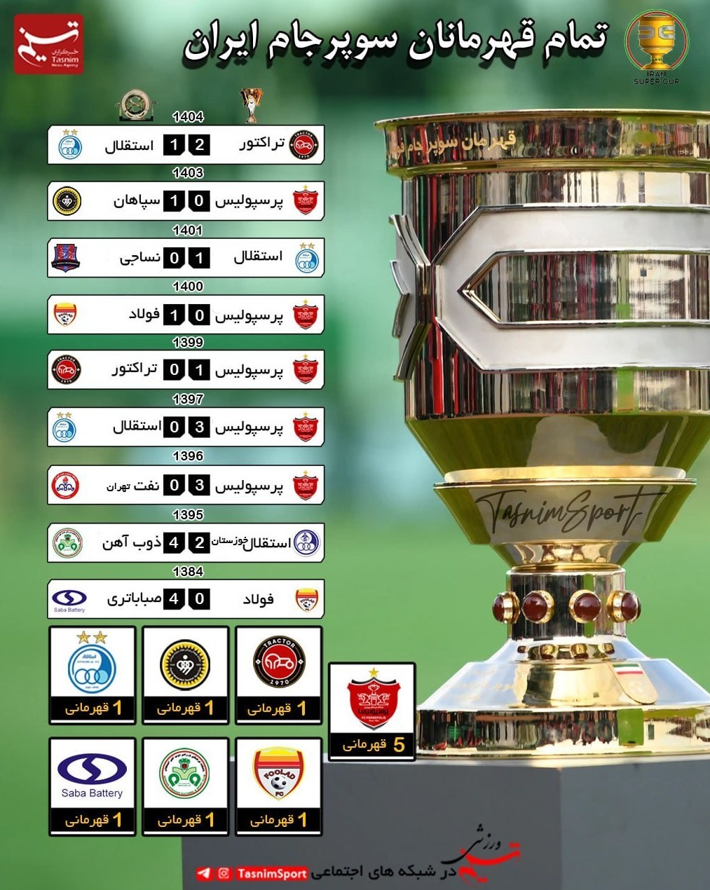 اینفوگرافی| تمام قهرمانان سوپرجام فوتبال ایران