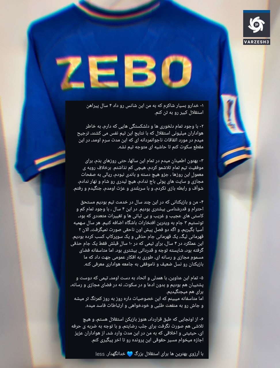 عکس: پست خداحافظی زبیر نیکنفس از استقلالیها