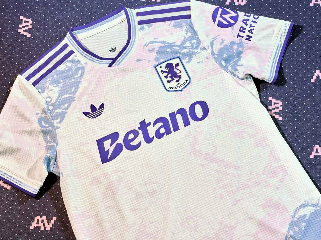 باشگاه استون ویلا با همکاری آدیداس از پیراهن سوم خود برای فصل ۲۶-۲۰۲۵ رونمایی کرد. این پیراهن به رنگ سفید با طرح ابر و بادی و زیبای صورتی و آبی است. خطوط آدیداس و لوگوها به رنگ بنفش هستند.