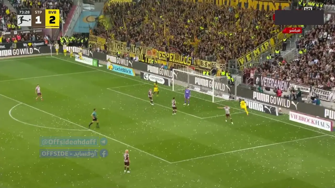 گل سوم دورتموند به سن پائولی توسط یولیان برانت در دقیقه ۷۴ زده شد.