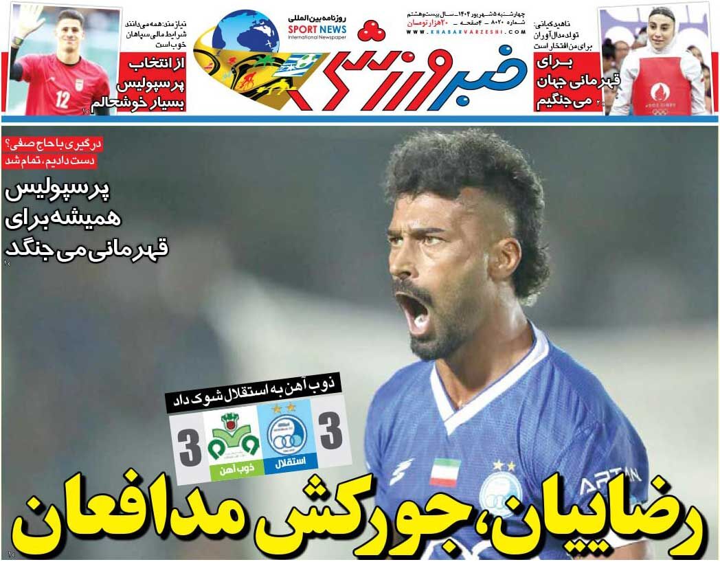 روزنامه خبرورزشی چهارشنبه ۵ شهریور ۱۴۰۴ منتشر شد.