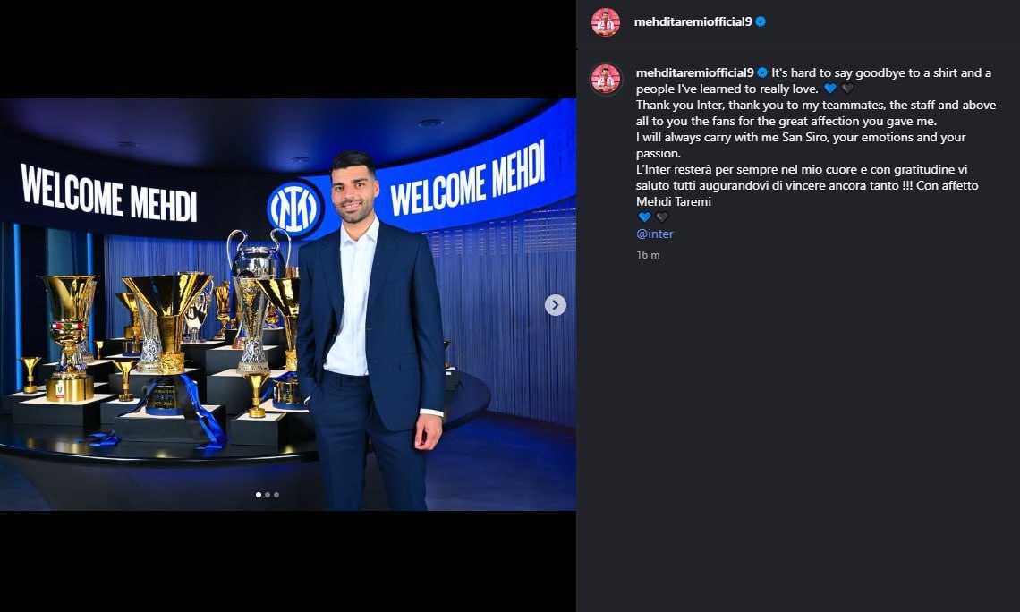 از اینتر، همتیمیهایم، کادر فنی و بهویژه شما هواداران بابت محبت بیکرانی که به من نشان دادید، سپاسگزارم. اینتر برای همیشه در قلبم خواهد ماند.