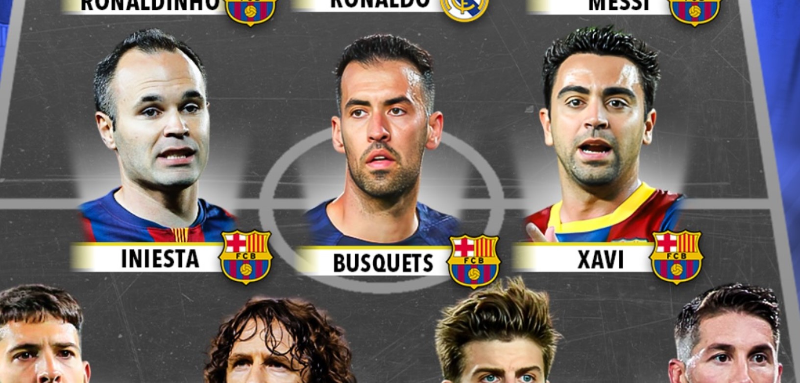 تیبو کورتوا؛ دنی کارواخال، ویرجیل فن دایک، جرارد پیکه، جوردی آلبا؛ ژاوی، آندرس اینیستا، سرخیو بوستکس؛ لیونل مسی، کریستیانو رونالدو و نیمار.