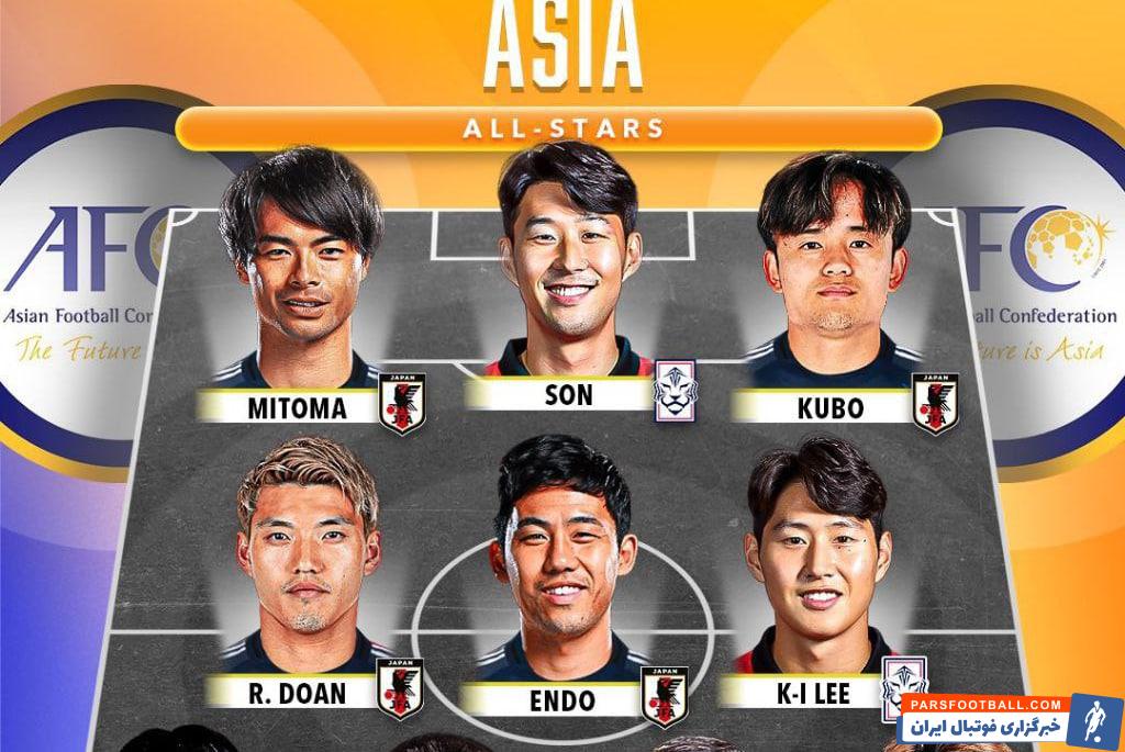 در این ترکیب ۱۱ نفره، شاهد سلطه کامل بازیکنان شاغل در لیگهای معتبر اروپایی از دو کشور ژاپن و کره جنوبی هستیم. ژاپن با ۷ نماینده و کره جنوبی با ۳ نماینده، عملاً تمام تیم را به خود اختصاص دادهاند و تنها سهمیه باقیمانده به عبدقادر خوسانوف، مدافع جوان ازبکستان، رسیده است.