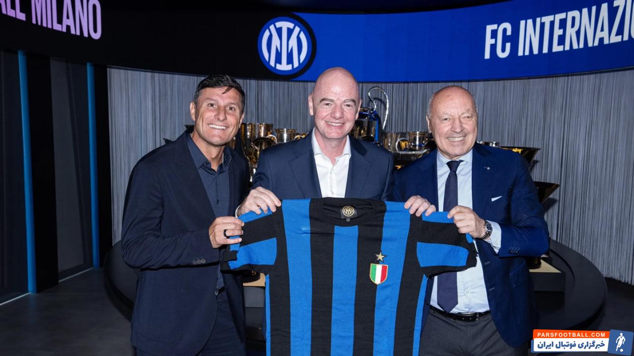 بازدید رئیس فیفا از مقر اینتر و دریافت پیراهن تیم محبوبش / عکس