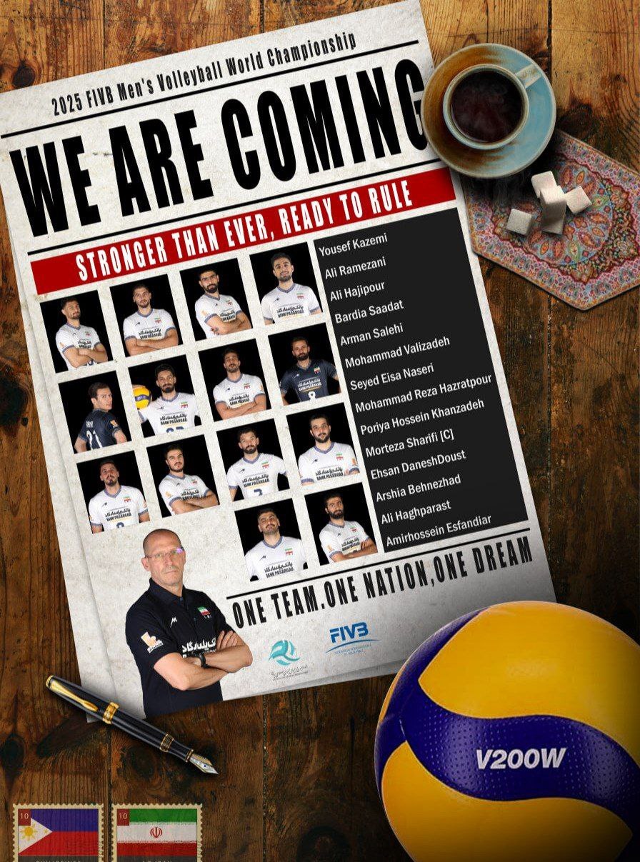 پوستر رسمی تیم ملی والیبال ایران برای مسابقات قهرمانی مردان جهان ۲۰۲۵ با نظر روبرتو پیاتزا انتخاب شد.