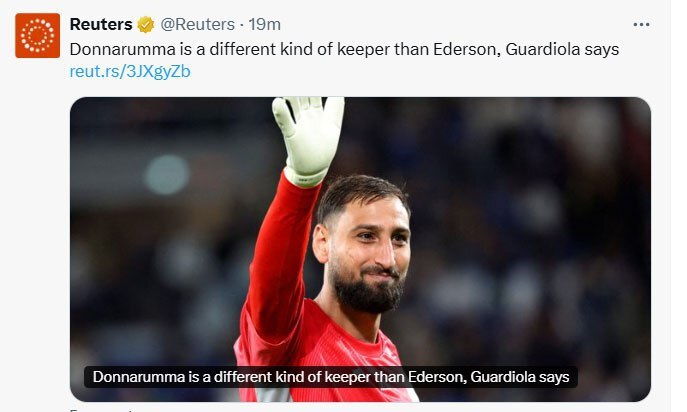پپ گواردیولا، سرمربی منچستر سیتی گفت جانلوئیجی دوناروما دروازهبانی متفاوت از ادرسون، دروازهبان سابق منچستر سیتی است و افزود که از این دروازهبان ایتالیایی نخواهد خواست، نقش سلف خود را برای این باشگاه تکرار کند.
