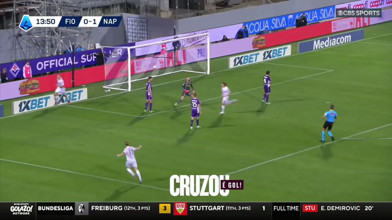 گل دوم ناپولی به فیورنتینا توسط راسموس هویلوند زده شد.
