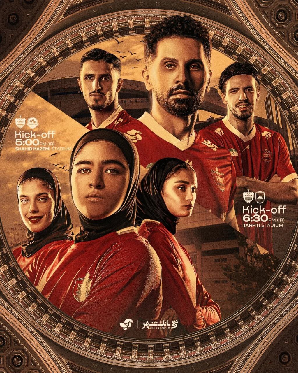 پوستر باشگاه پرسپولیس برای دیدار تیم های بانوان و آقایان این باشگاه در دو رقابت فوتبال