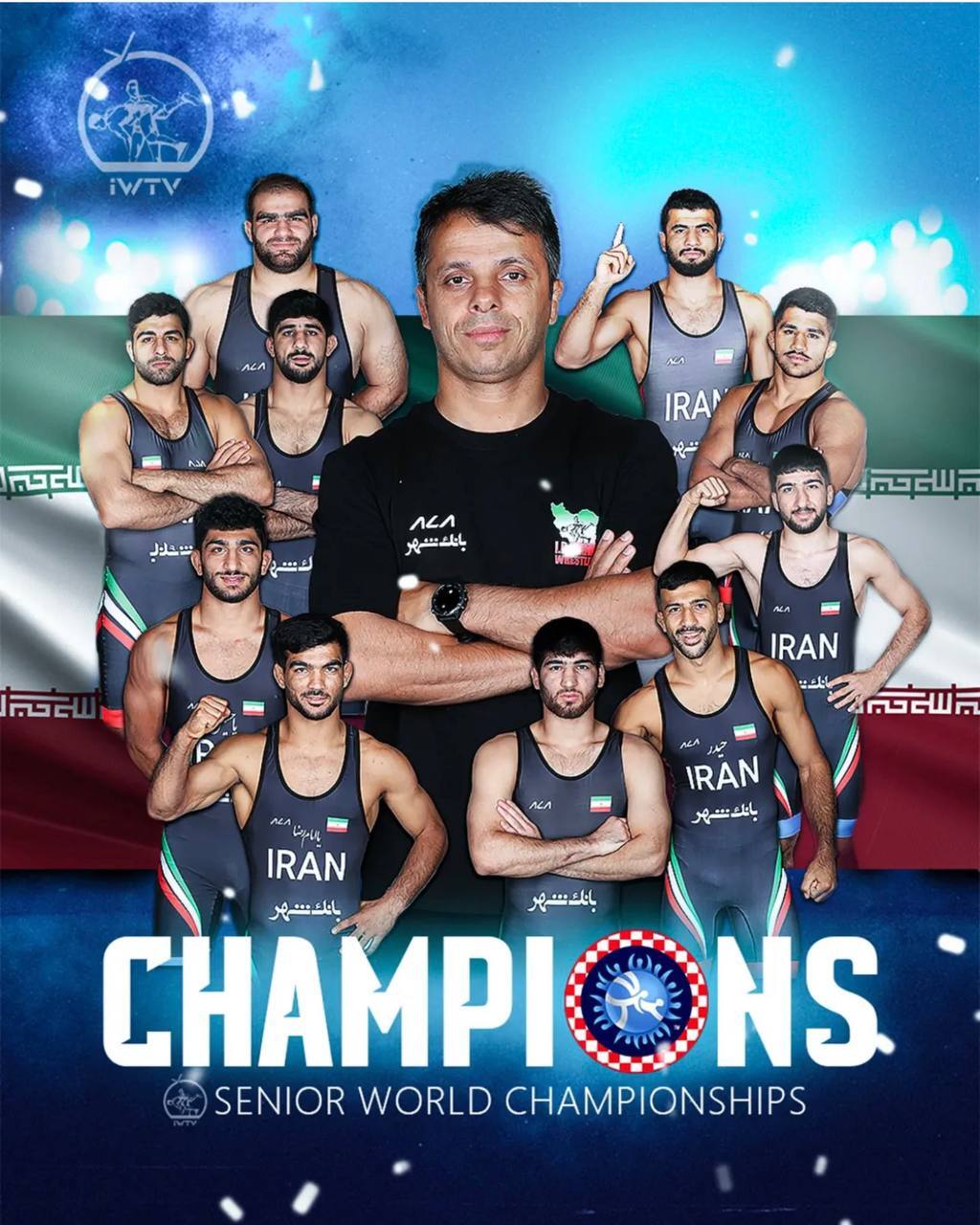 پوستر اتحادیه جهانی کشتی برای قهرمانی تیم ملی کشتی فرنگی ایران در مسابقات قهرمانی جهان