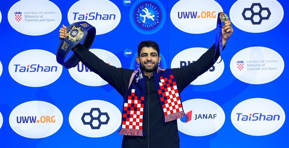 محمدهادی ساروی پس از کسب دومین مدال طلا در کشتی فرنگی جهان: این مدال را به مردم عزیز کشورم تقدیم میکنم