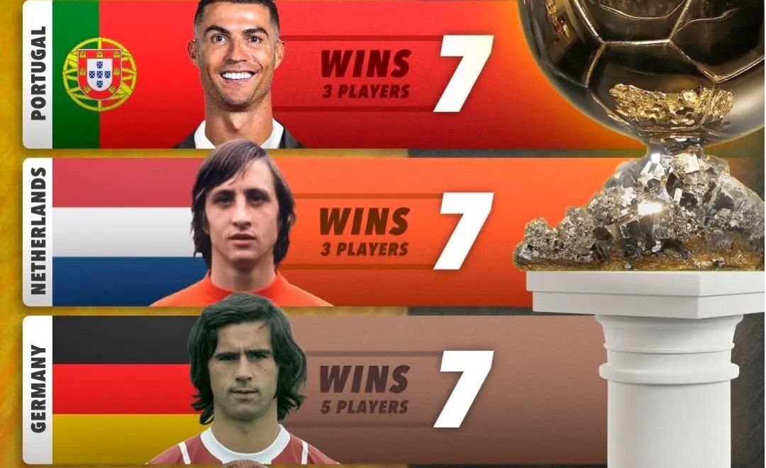 آلمان با نامهای بزرگی مانند بکن باوئر، رومنیگه و مولر جایگاه ویژهای دارد. پرتغال نیز با درخشش کریستیانو رونالدو که پنج بار توپ طلا برده و همچنین لوئیس فیگو و اوزه بیو سهم بزرگی در تاریخ این جایزه داشته است.