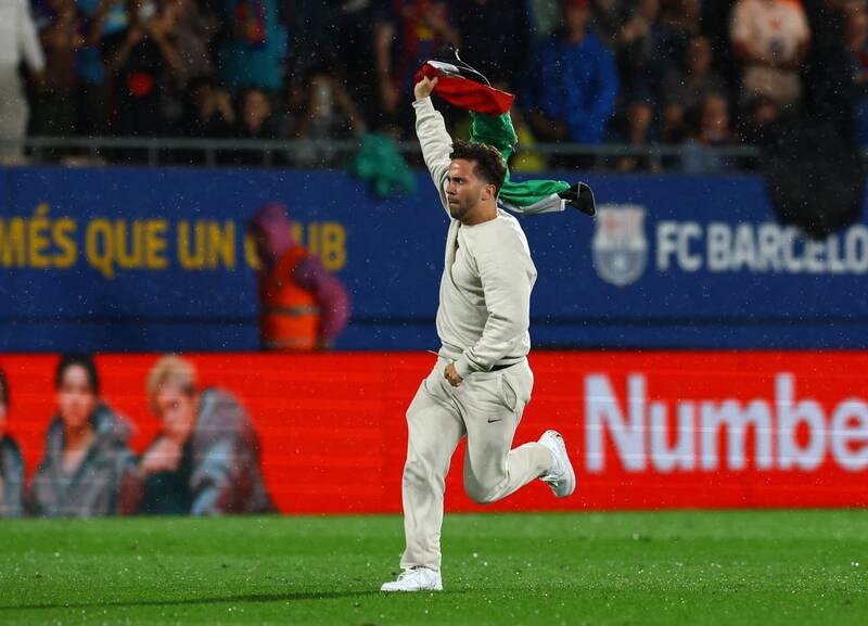 به گزارش مشرق، در جریان دیدار بارسلونا و ختافه در ورزشگاه یوهان کرایف، صحنهای غیرمنتظره بازی را برای لحظاتی متوقف کرد. صحنهای که باعث دلگرمی حاضران در استادیوم شد. یک تماشاگر وارد زمین شد و در حالی که پرچم فلسطین را در دست داشت، روی چمن شروع به دویدن کرد. حرکت او توجه همه بازیکنان، هواداران و البته نیروهای امنیتی حاضر در ورزشگاه را به خود جلب کرد.