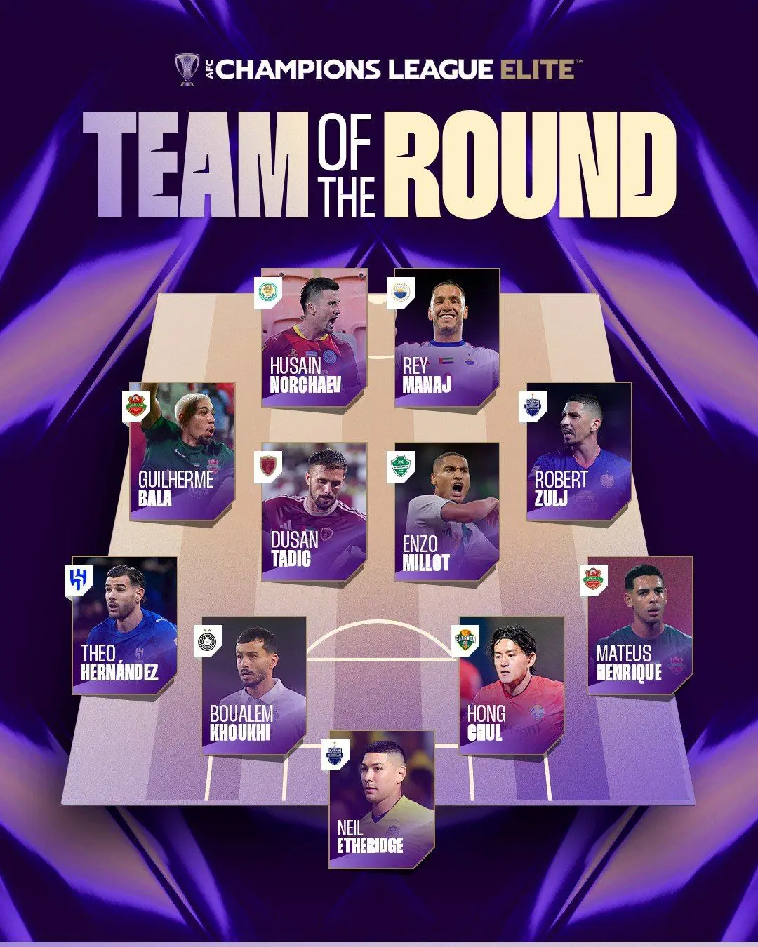 همچنین ماتئوس هنریکه و گیلهرمه بالا، دو بازیکن شباب الاهلی که هفته گذشته مقابل تراکتور نمایش درخشانی داشتند، در ترکیب منتخب جای گرفتند. این موضوع بار دیگر نشان داد که تیمهای عربی با استفاده از ستارههای بینالمللی توانستهاند سطح خود را در آسیا بهطور چشمگیری ارتقا دهند.