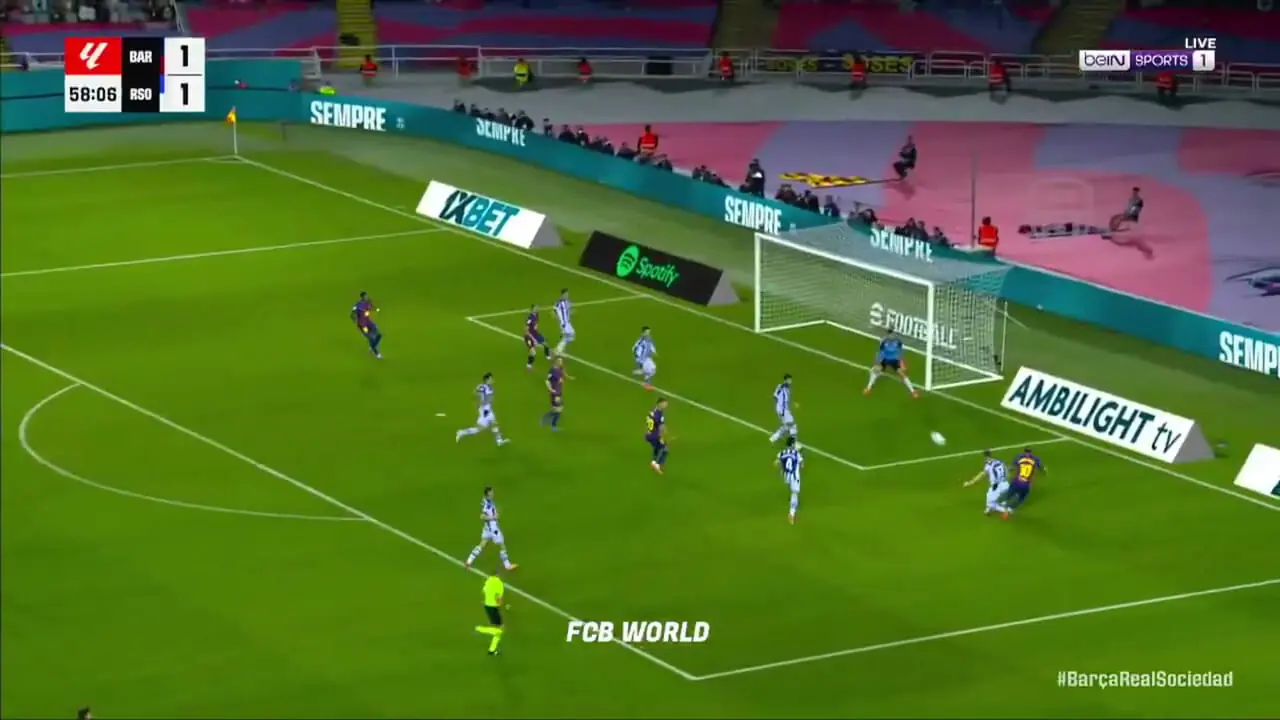 گل دوم بارسلونا به رئال سوسیداد توسط رابرت لواندوفسکی زده شد.
