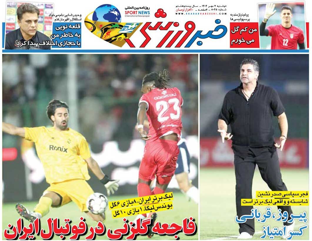 روزنامه خبرورزشی دوشنبه ۷ مهر ۱۴۰۴ منتشر شد.