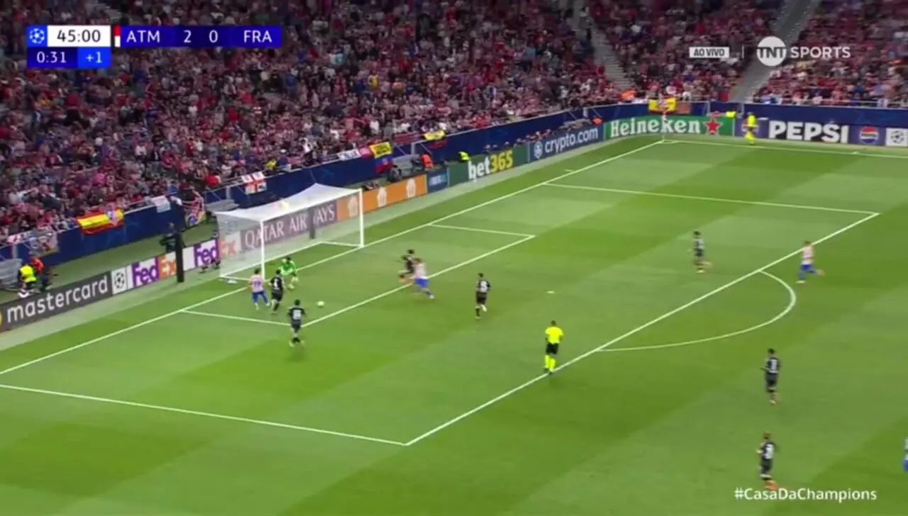 گل سوم اتلتیکو مادرید به آینتراخت فرانکفورت توسط آنتوان گریزمان زده شد.