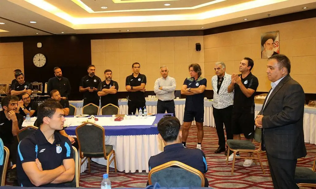 او ابتدا جلسهای خصوصی با ریکاردو ساپینتو برگزار کرد و سپس در جمع بازیکنان حاضر شد و خطاب به آنها گفت: «میدانیم در شرایط سختی هستیم، اما به کادرفنی و شما بازیکنان ایمان داریم و باید این روزها را کنار هم پشت سر بگذاریم. اولین نفر خودمان از نتایج راضی نیستیم و باید آنها را جبران کنیم. توانایی شما و کادرفنی را میدانیم و میتوانیم این دوران را پشت سر بگذاریم.»