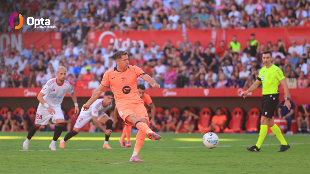 پس از شکست بیرون از خانه ۴-۱ بارسلونا مقابل سویا در هفته هشتم فصل ۲۶-۲۰۲۵ لالیگا، مرجع آماری اوپتا نکتهای در مورد پنالتی خراب کردن روبرت لواندوفسکی منتشر کرد. بر اساس این آمار، لواندوفسکی ۳ ضربه از ۱۰ پنالتیای که در لالیگا زده را از دست دادهاست. از فصل ۲۳-۲۰۲۲ یعنی اولین سال حضور بازیکن لهستانی در این رقابتها تنها یاگو آسپاس و ودات موریچ با ۴ پنالتی از دسترفته عملکرد ضعیفتری داشتهاند، در حالی که دنی پارخو نیز مانند مهاجم پیشین بایرن مونیخ ۳ پنالتی را در این مدت خراب کرده است.