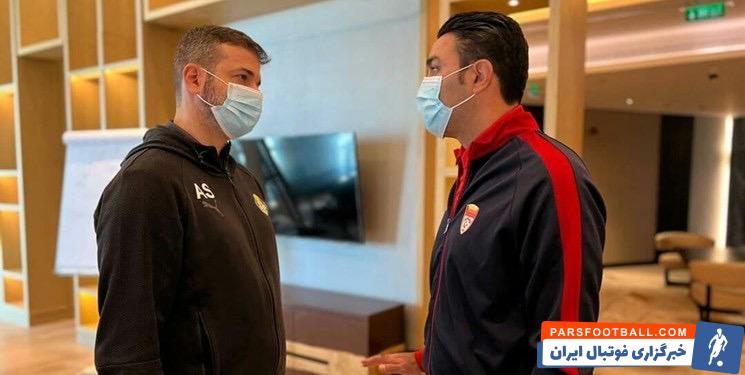 سرمربیان تیمهای فولاد ایران و الغرافه قطر دیداری کوتاه و صمیمانه با یکدیگر در محل برگزاری نشست خبری داشتند.