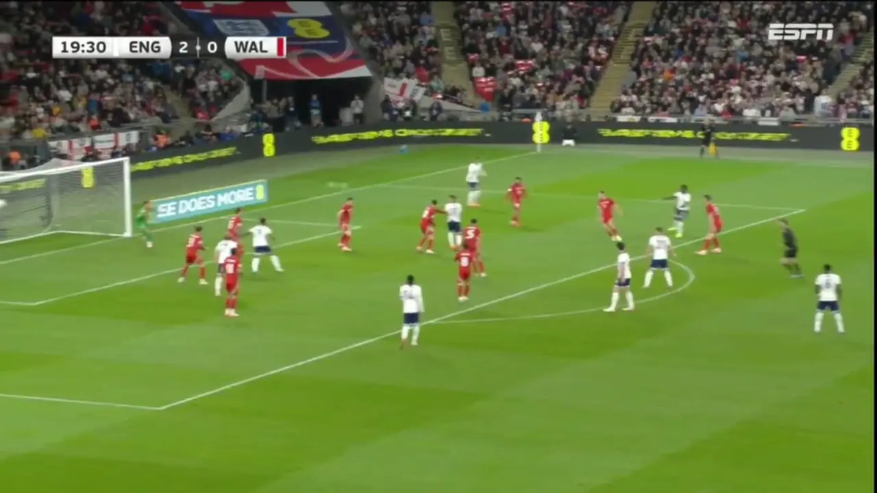 گل دوم انگلیس به ولز توسط ساکا زده شد.