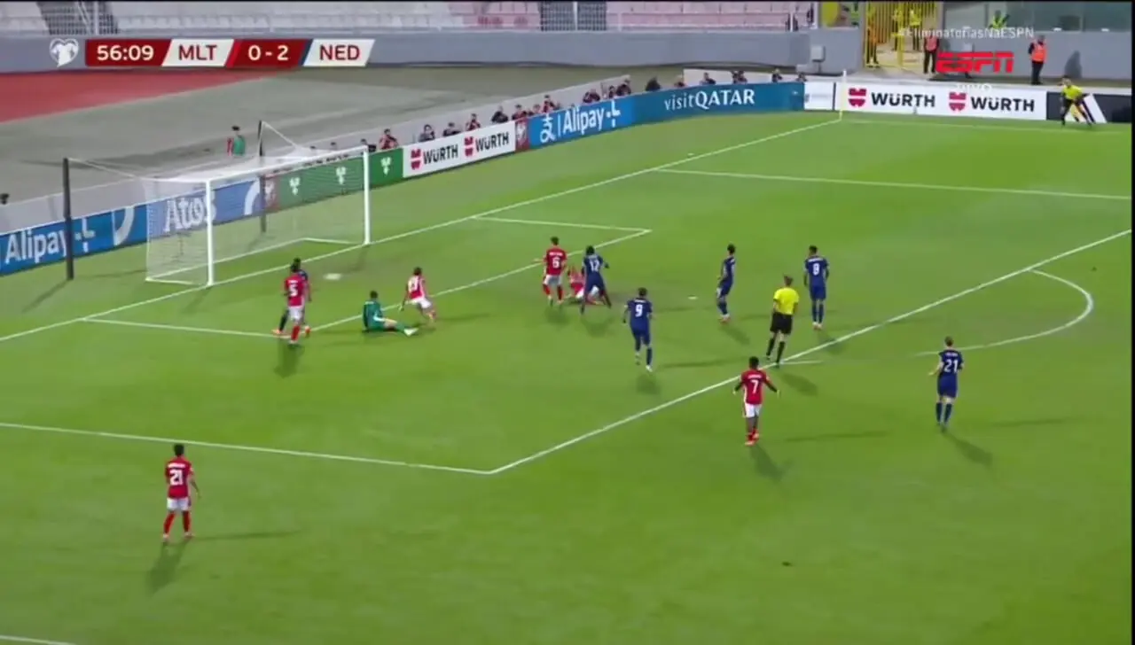 گل سوم هلند به مالت توسط تیجانی ریندرز زده شد.
