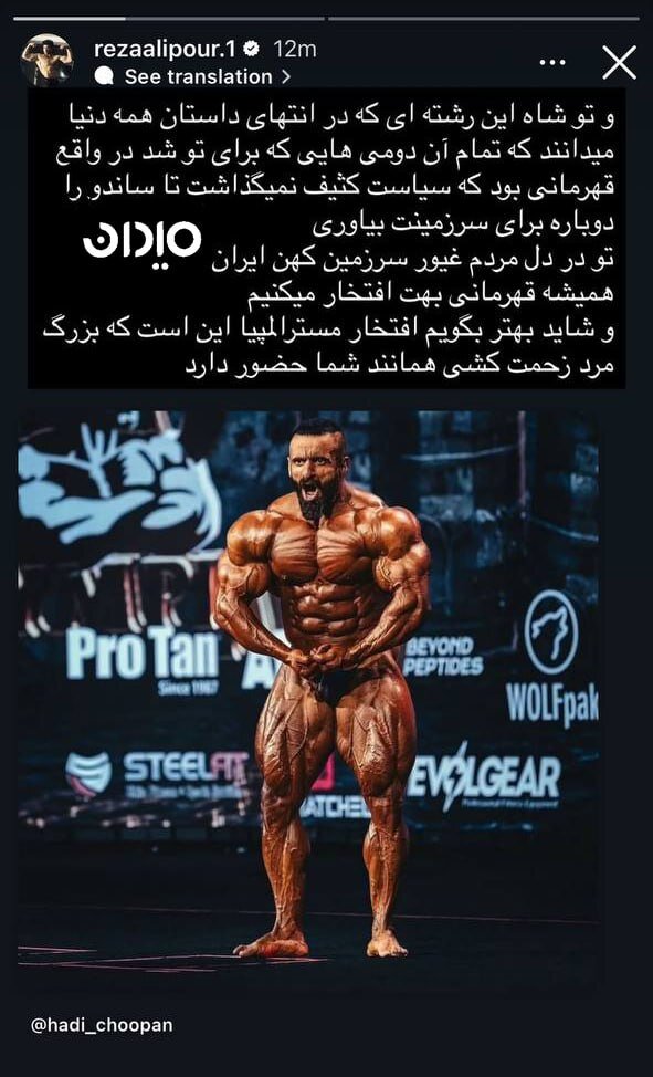 عکس| استوری قهرمان دنیا برای هادی چوپان: لعنت به سیاست کثیف