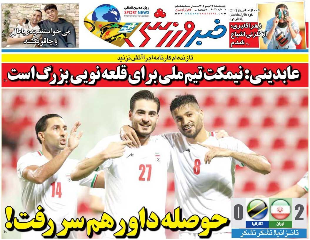 روزنامه خبرورزشی چهارشنبه ۲۳ مهر ۱۴۰۴ منتشر شد.