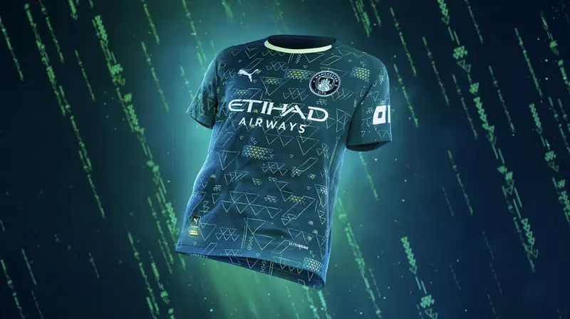 این لباس چشمنواز، که حاصلهمکاریمشترک میان باشگاه منچسترسیتی، پوما و EASportsFC است، نمادی از پیوند سنت فوتبال و نوآوری دیجیتال به شمار میرود. طراحی این کیت با زمینه سبز جنگلی تیره و گرافیکهای مثلثی فیروزهای و متالیک، جلوهای منحصربهفرد دارد.