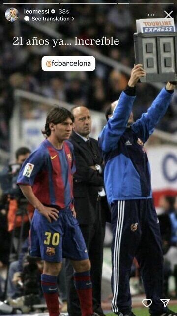 لیونل مسی به سالروز نخستین بازی خود با پیراهن بارسلونا واکنش نشان داد و یک استوری منتشر کرد.