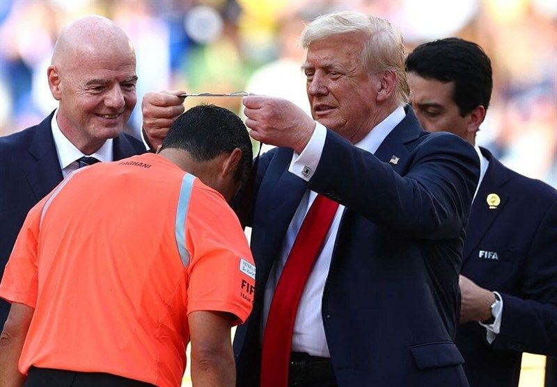 علیرضا فغانی از دونالد ترامپ جایزه خود را به عنوان داور فینال جام جهانی باشگاهها دریافت کرد