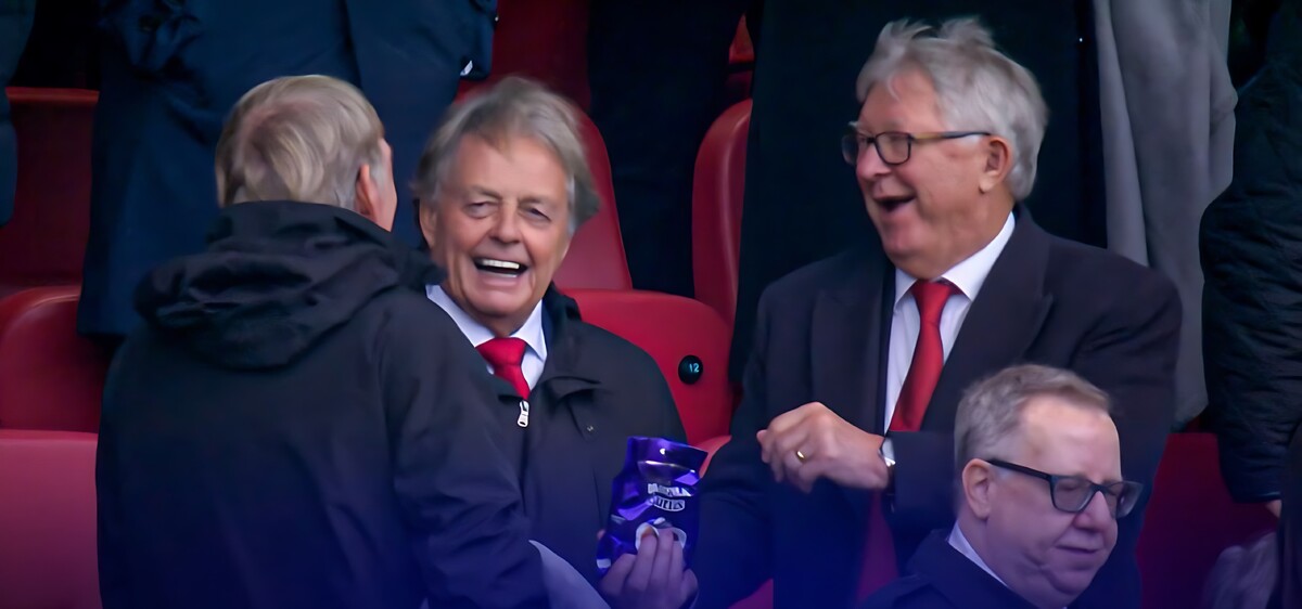 در این بازی، دو اسطوره بزرگ و محبوب فوتبال انگلیس، الکس فرگوسن و کنی دالگلیش، برخلاف رقابتهای شدید بین دو تیمشان، در حالی که روی سکوها نشسته بودند، با یکدیگر گپ میزدند و از صحبتهای یکدیگر میخندیدند. در یکی از لحظات جالب، فرگوسن که شکلاتی در دست داشت، مقداری از آن را به دالگلیش تعارف کرد. اسطوره لیورپول ابتدا کمی مردد بود، اما پس از لحظاتی، درخواست فرگوسن را پذیرفت و چند تکه شکلات برداشت که باعث لبخند بیشتر سرمربی پیشین یونایتد شد.