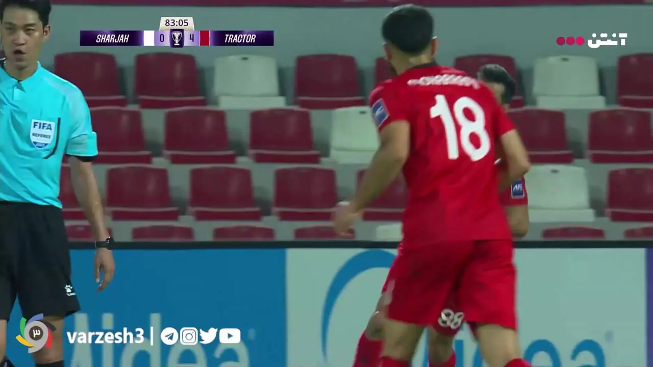 گل پنجم تراکتور به شارجه توسط زائر کاظمینی در دقیقه ۸۴ زده شد.