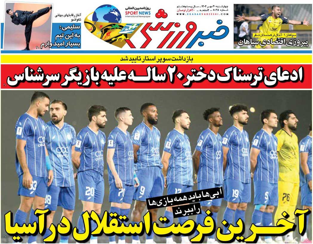 آخرین فرصت استقلال در آسیا/ روزنامه خبرورزشی را رایگان بخوانید