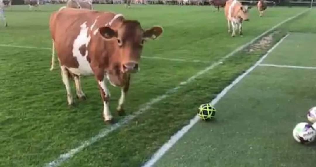 عکس| یک گاو جان این بازیکن فوتبال را گرفت!
