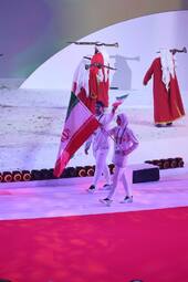 دو ورزشکار دختر و پسر از کشور بحرین به نمایندگی از ورزشکاران حاضر در بازیها سوگند یاد کردند که همه ورزشکاران به قوانین این بازیها احترام میگذارند.